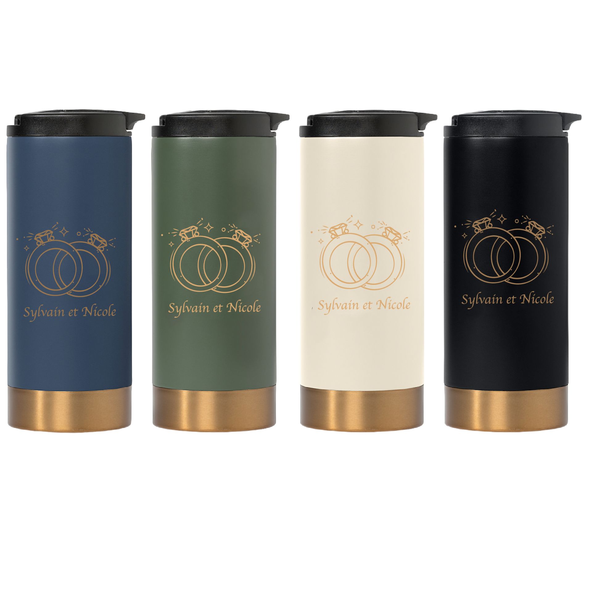 Commande minimum : 50 Restez hydraté(e) et élégant(e) avec le gobelet isotherme Astrid. Fabriqué en acier inoxydable à double paroi isolée sous vide (intérieur 304 et extérieur 201), il est doté d'un couvercle à verrouillage par rotation étanche, conçu pour maintenir vos boissons chaudes ou froides pendant plus de 6 heures. Son élégante finition mate est rehaussée d'une touche cuivrée mate au fond, lui conférant un style raffiné et haut de gamme. Le couvercle en polypropylène noir est parfaitement étanche pour un transport en toute sérénité. Ce gobelet de 385 ml (13 oz) est sans BPA, conforme aux normes de la FDA et vous offre une solution durable et performante pour savourer vos boissons.